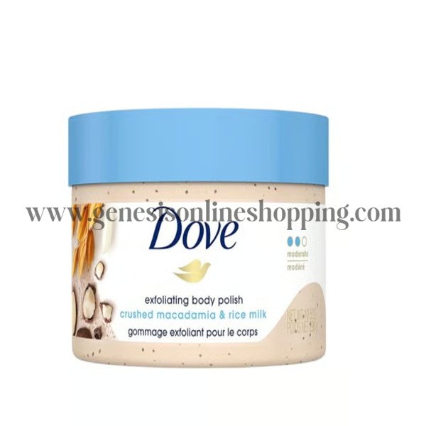 DOVE EXFOLIATING BODY POLISH BODY WASH SCRUB (CRUSHED MACADAMIA AND RICE MILK)
